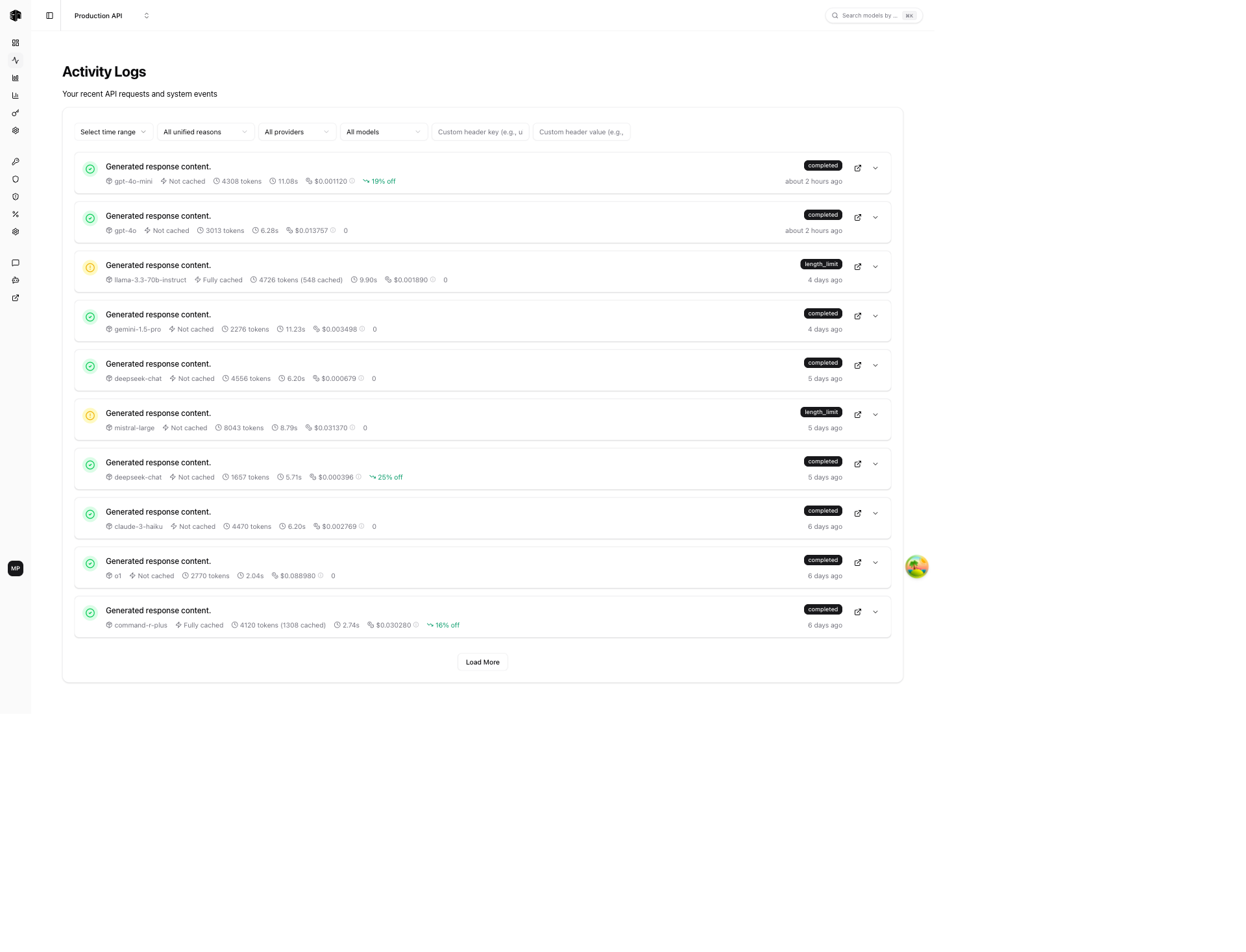 | Unified reasons | Filter by completion reason (e.g., stop, length, error) |