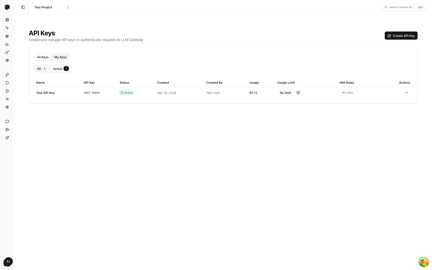 Create, limit, and control API keys for authenticating with LLM Gateway