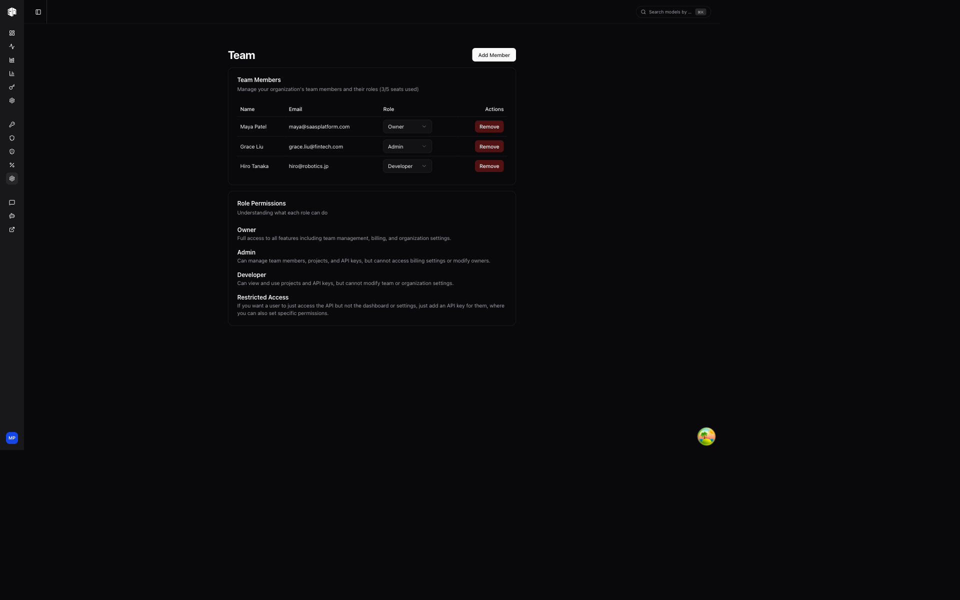 Manage team members and their roles within your organization
